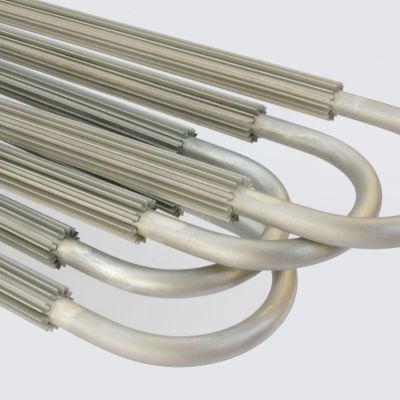 Produciamo tubi alettati longitudinali nelle leghe Cupronichel 70/30 e 90/10, ma il nostro prodotto di punta è il tubo alettato in Cupronichel 70/30 materiale utilizzato sia per tubo base sia per alette. Possibili combinazioni di materiali sono le seguenti: tubo base Cupronichel 70/30 o 90/10 e alette nello stesso materiale oppure in rame, ottone e ottone con aggiunta di alluminio.
